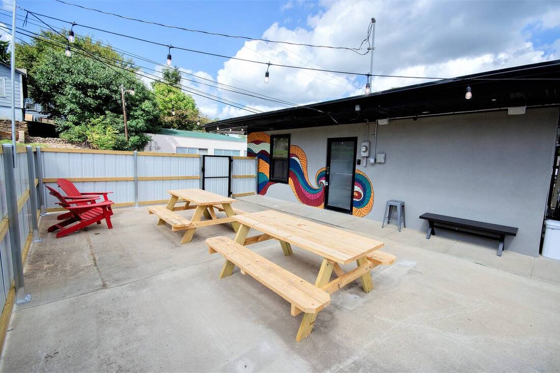 Modern amenities abound in the hideaway with fast Wi-Fi, TV’s in every room, and board games to enjoy family fun together. The outdoor patio provides plenty of space for grilling out or a round of cornhole. Perhaps the most memorable aspect of the Spring Street Hideaway is the Harry Mural painted on the side of the building, commemorating the true eclectic nature of Tahlequah.