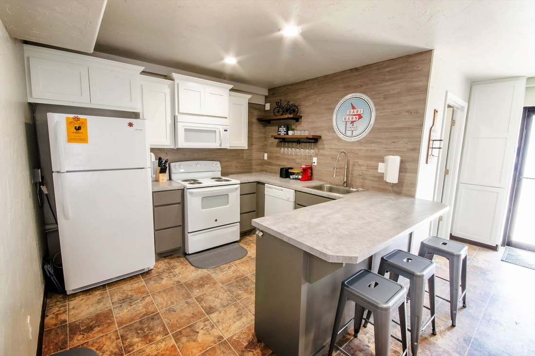 In the same building as the iconic Dari Barn restaurant that was built in the 60’s rests a beautiful and modern bungalow with historic charm and all of the amenities that you could need. There are no curly fry remains left in this building as the owners have converted the burger joint into a stylish and clean living space.