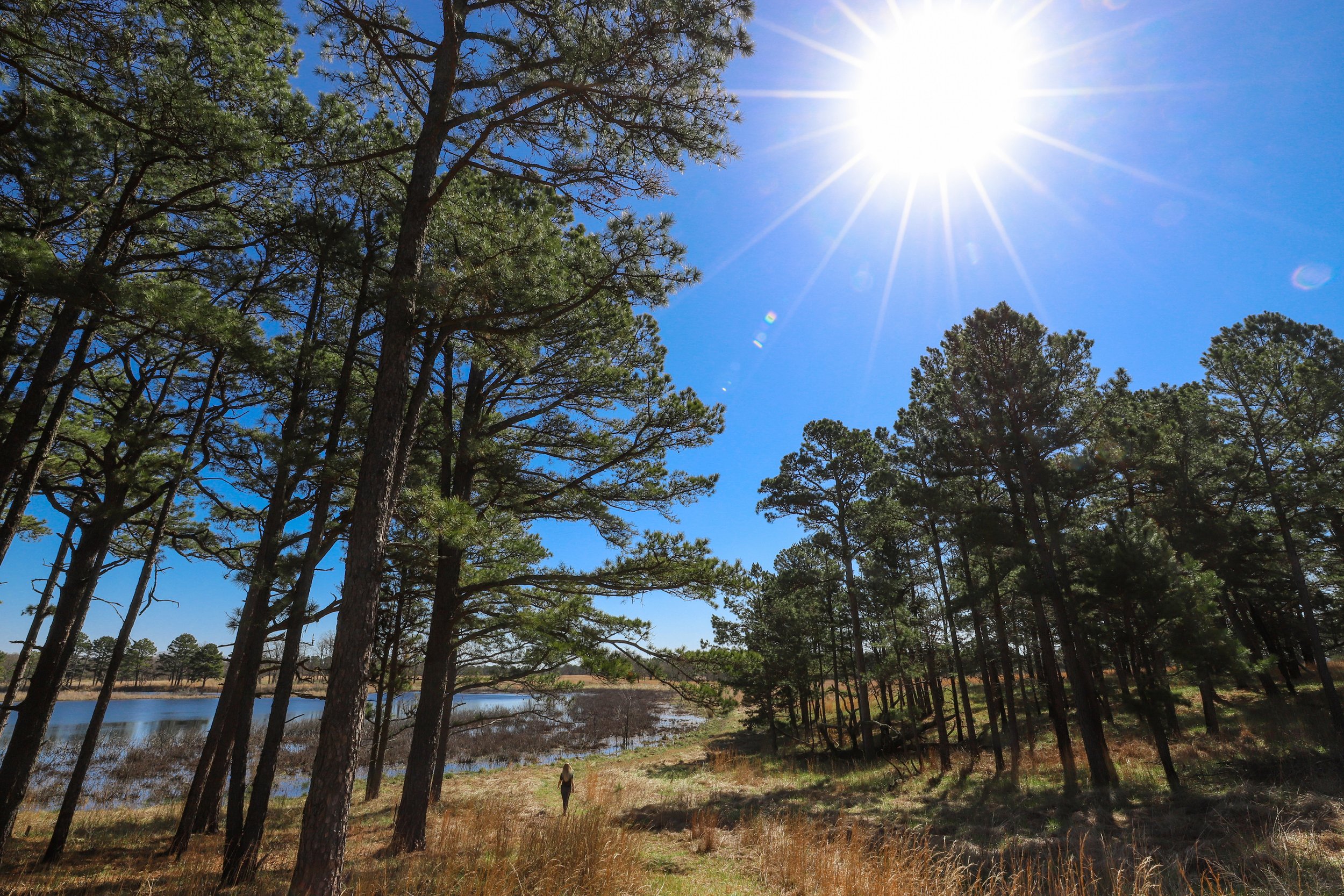 Take a stroll through the pine trees in the beautiful foothills of the Ozarks. There is always the chance to see birds, deer, turkeys, and elk! The silence of the area is what stands out most. Take 5 minutes while hiking to stop, and listen to the breeze blowing through the pines, birds chirping, and noticeable lack of city sounds.